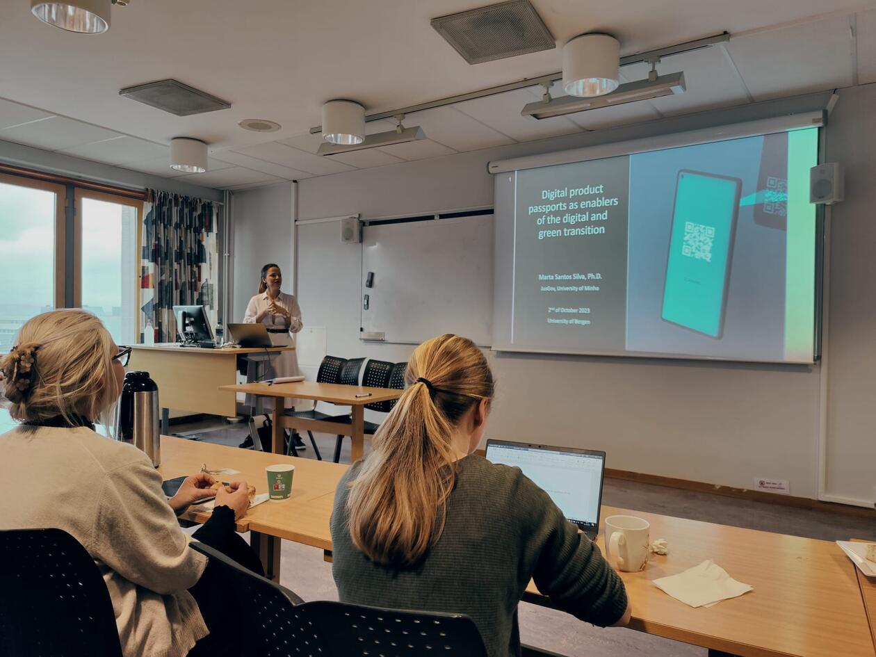 Dr Marta Santos Silva is a Postdoctoral Researcher at the Research Centre for Justice and Governance at Minho University in Portugal and affiliated member of the Maastricht European Private Law Institute and the Centre of European Law and Politics in Bremen. Marta is a driven researcher working on cutting edge issues in between private law and sustainability/environmental issues, and was a guest of Professor Berte-Elen Reinertsen Konow here in Bergen. Thanks to their hard work, the University of Minho has been awarded, as promoter university and alongside the University of Bergen as partner university, research funding to promote the joint research project “Legal-By-Design Digital Disruption in the Circular Economy: An Exploratory Research project”.