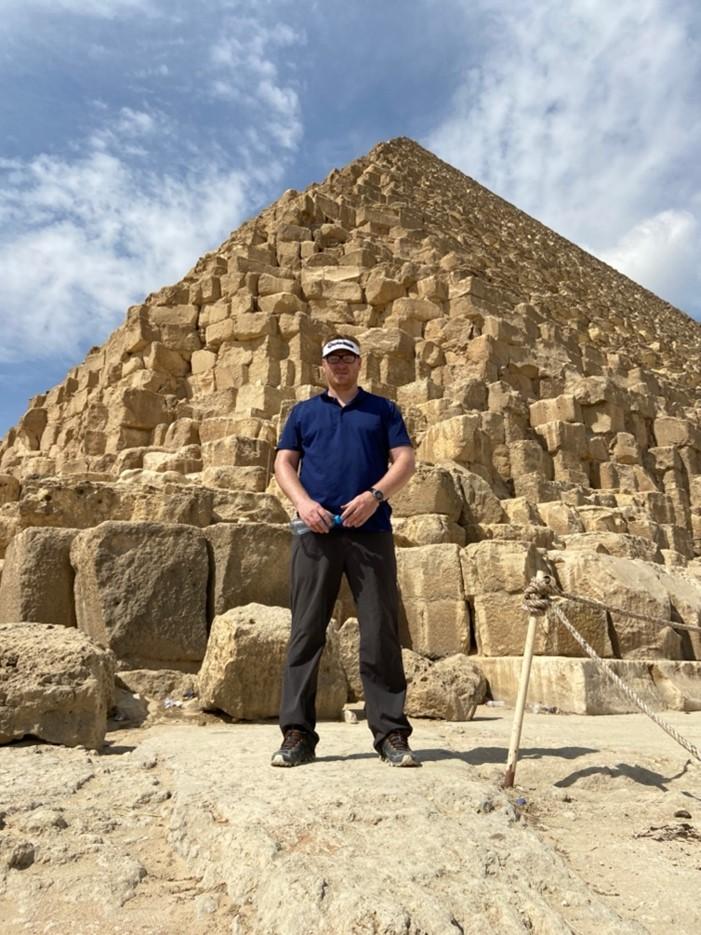 | Below: Jeremy standing in front of the Great Pyramid of Giza, Egypt |