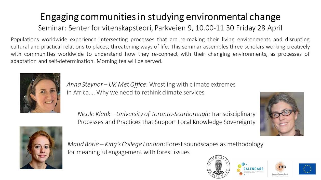 Today you'll hear from three scholars working creatively with communities worldwide to understand how they re-connect with their changing environments, as processes of adaptation and self-determination:
