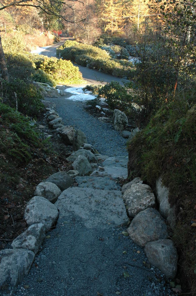 You are welcome to try the new flight of steps in the Rhododendron Collection in the Arboretum. It connects the road through a new field of heritage rhododendron plants with the collection of cultivars in Nydalen.