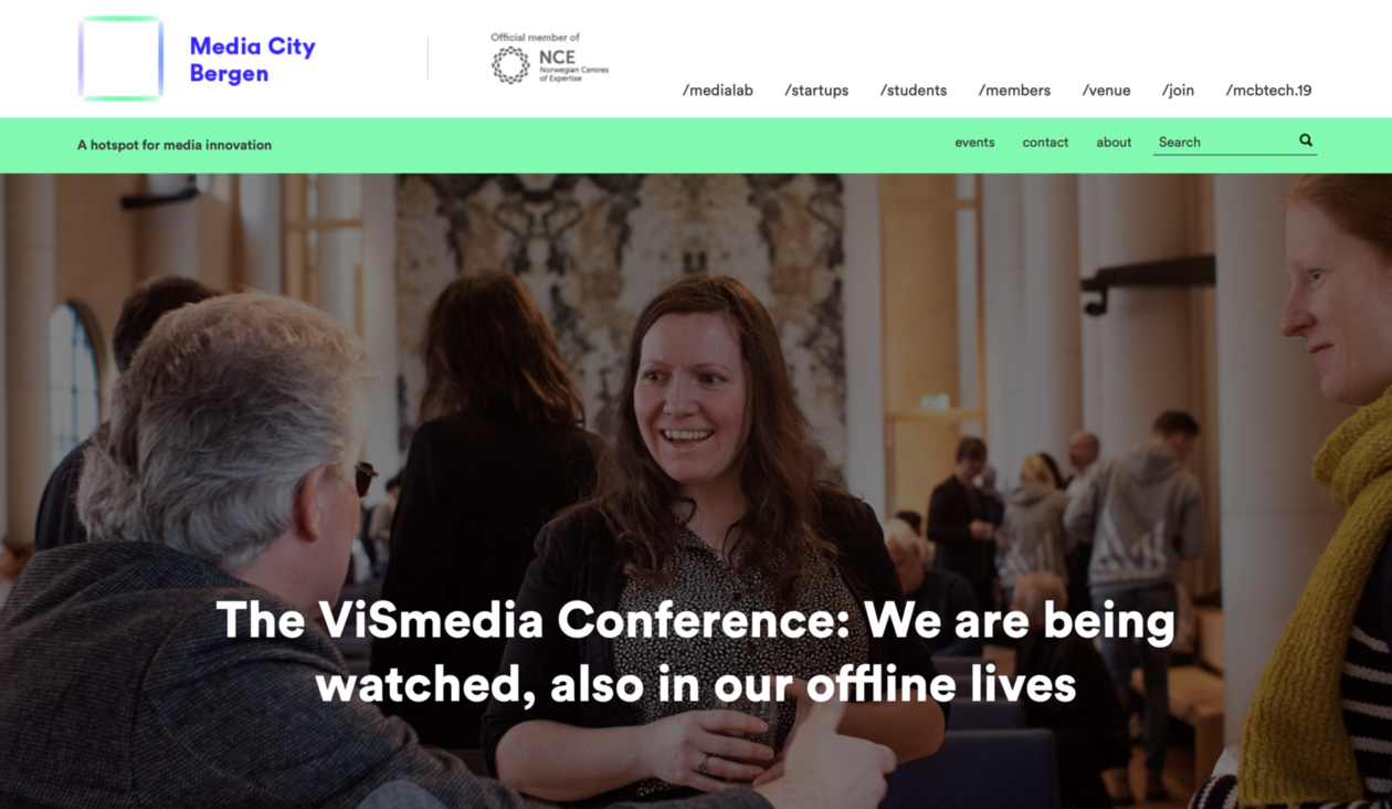 The ViSmedia Conference: We are being watched, also in our offline lives - Media City Bergen https://mediacitybergen.no/home/the-vismedia-conference-2019/?fbclid=IwAR3ERA-d4TVwrosZz4891wtVzj08NqBflgi3y8P6_felcxhPes1wqnzx3-wmediacitybergen.no