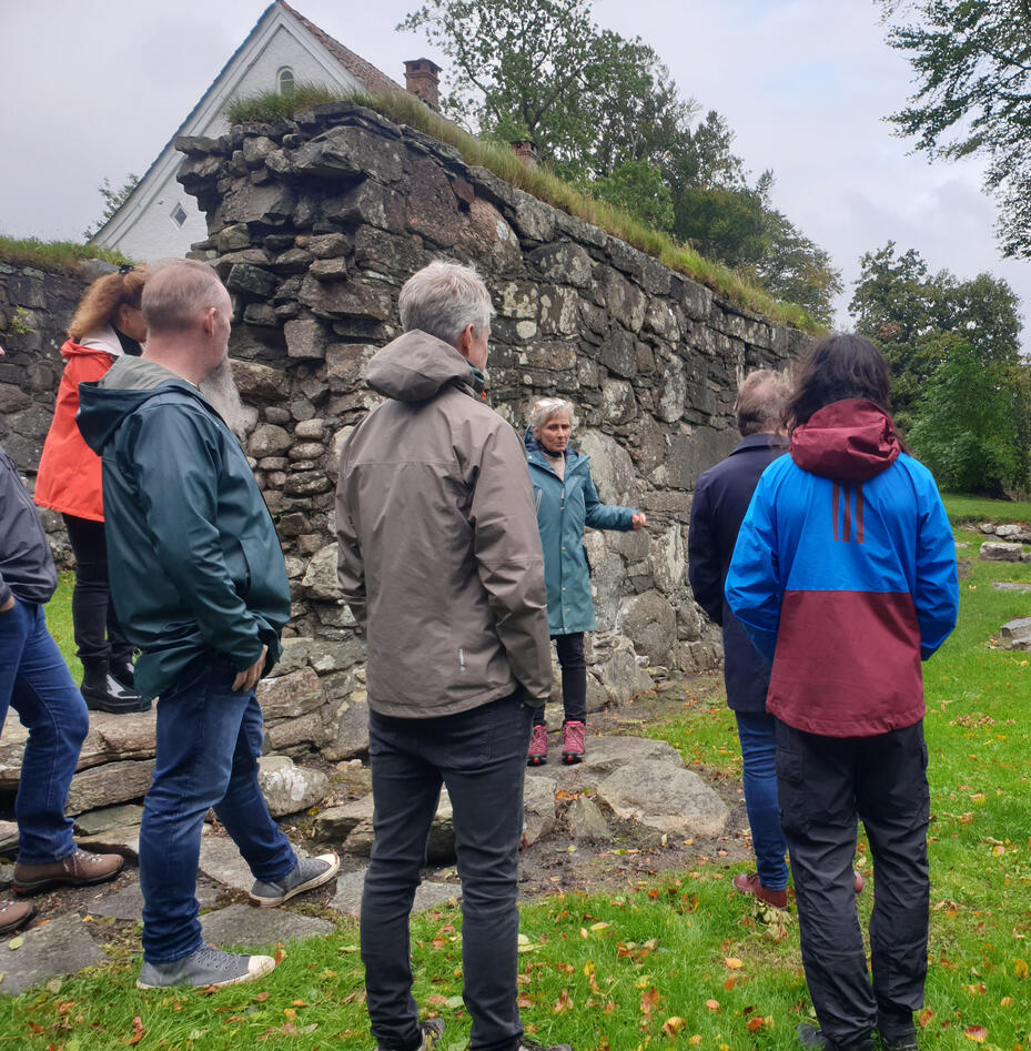 Staden der Halsnøy kloster blei lagt, midt i skipsleia og med eit mildt klima og fruktbar jord, er ein sentral del av eitkvart studium av klosterhistoria. Petersen tok dei andre seminardeltakarane med tilbake i tid, til både klosterliv og herregard, hagebruk og utstilling med mellomalderfunn.