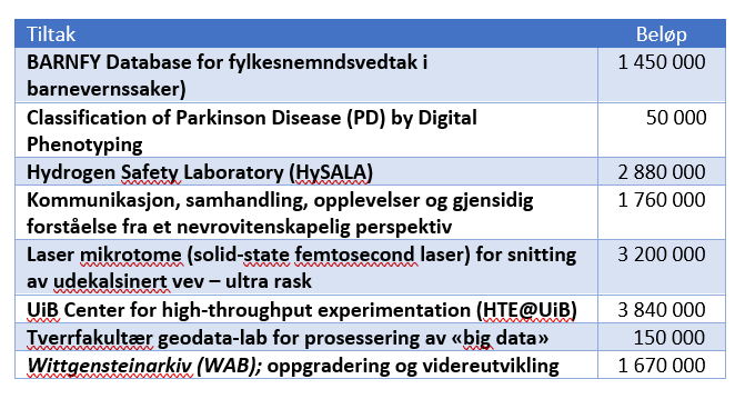 Om UiBs budsjettpost for større og felles forskningsinfrastruktur