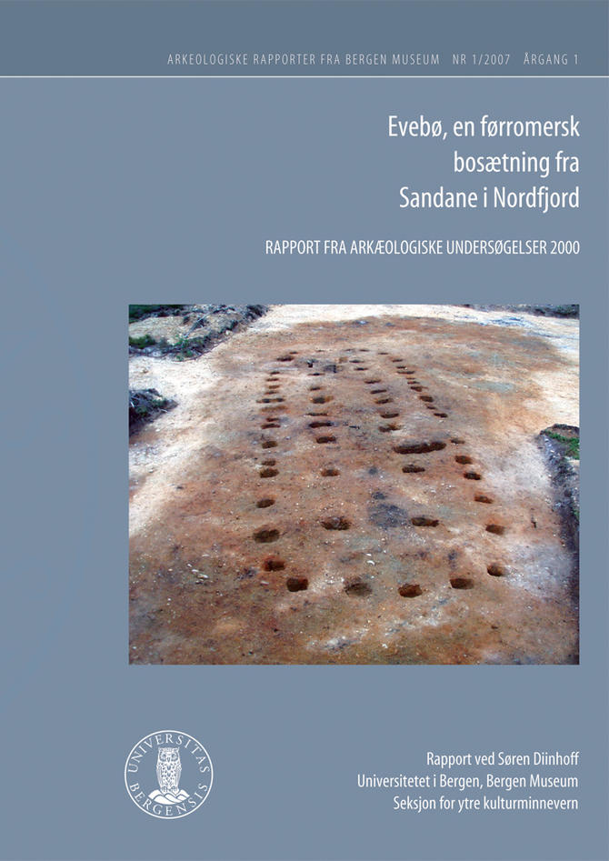 Evebø, en førromersk bosætning fra Sandane i Nordfjord. Rapport fra arkeologiske undersøgelser 2000. Arkeologiske Rapporter fra Bergen Museum nr 1/2007 Årgang 1. Universitetet i Bergen, Bergen Museum, Seksjon for ytre kulturminnevern. Rapport ved Søren Diinhoff.