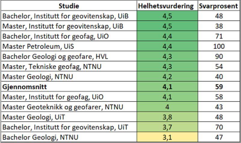 GEO på topp i Norge for mest fornøyde geofag-studenter i 2020, ifølge studiebarometeret