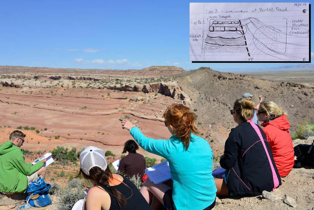 Dette feltkurset er støttet av Statoil gjennom Akademia-avtalen og er vel anvendte penger; fra første lokalitet ser vi ledere tydelig hvordan kunnskapen klistrer seg til studenthjernene med rakettfart, takket være visuelt uslåelige felteksempler, godt teamarbeid og bruk av problem-basert læring. En viktig komponent i læringsprosessen er tegning og skissering i feltboken. Det er ingen bedre måte å tilnærme seg en blotning eller lokalitet – iakttakelsen skjerpes mens begge hjernehalvdelene blir aktivert. I følge studentene selv er skissering noe det kunne ha vært mer fokus på fra et tidligere tidspunkt. Spørsmål i feltmanualen løses i grupper og diskuteres deretter i plenum, mens en mer gjennomarbeidet presentasjon blir gitt av studentene tidlig neste morgen. Når de i tillegg på kveldstid jobber med et såkalt ”oljespill”, der målet er å finne olje ved å velge riktig borelokasjon ut fra kjøp og tolkning av reelle seismiske data og brønndata fra ekskursjonsområdet, blir arbeidsdagene lange. Mange av studentene bruker også tid før eller etter feltkurset til å besøke andre geologisk interessante områder, eller til feltarbeid i forbindelse med master- eller PhD-prosjekt. Et slikt Utah-kurset er uforglemmelig for deltakerne, og vi har stor tro på at mye av kunnskapen som kommer inn i løpet av denne uken vil sitte arbeidslivet gjennom.