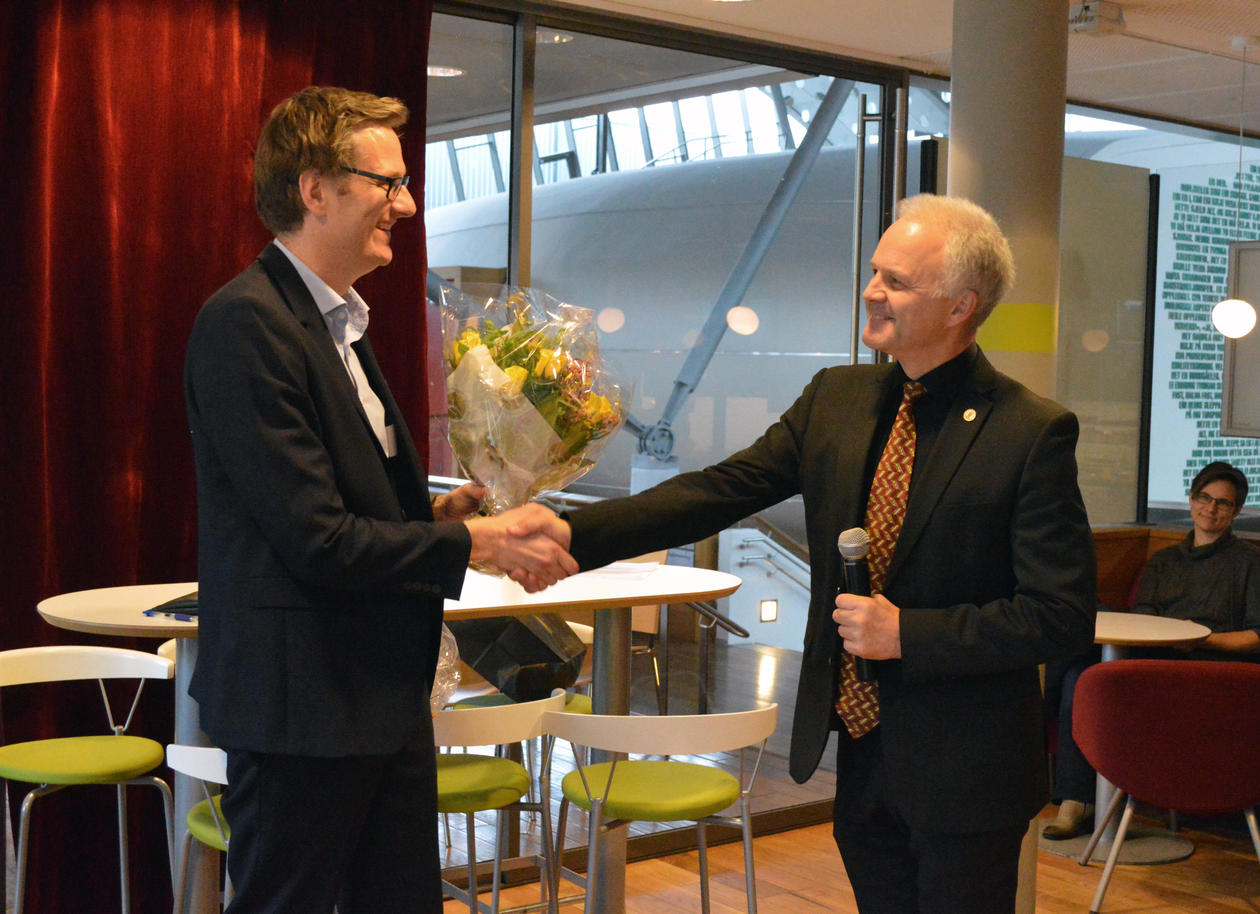 Lykkeønskninger ble også gitt av Knut Helland, dekan ved det Samfunnsvitenskapelige Fakultet, Sveinung Hole, direktør i Bergens Forskningsstiftelse, og Svein Olaf Dahl, instituttleder på Institutt for geografi ved UiB. Vi ønsker Håvard Haarstad til lykke med tildelingen og ser frem til mye spennende forskning fremover!