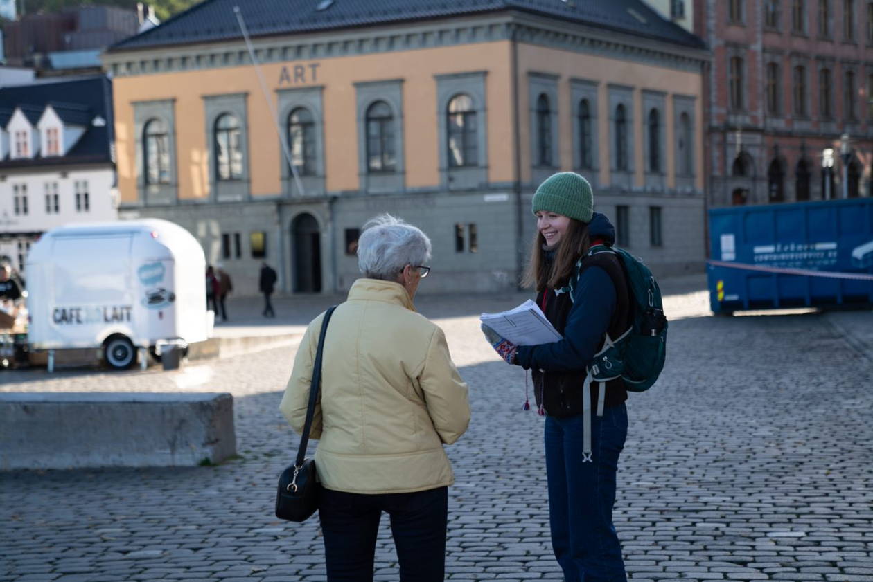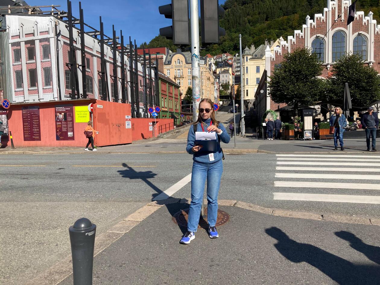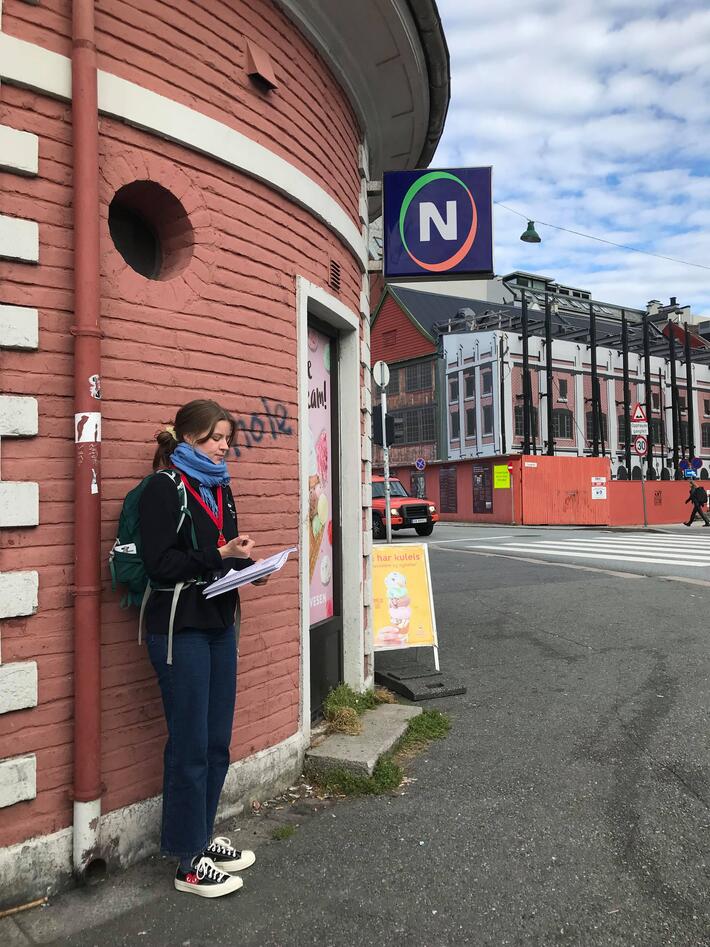 I flere uker har vi, Ingvild og Helene, jobbet for den nyopprettede seksjonen for blågrønn utvikling i Bymiljøetaten i Bergen kommune. Iblant dyktige fagfolk og kaffeautomater ved hvert hjørne, tilbringer vi mandagen på kontoret - det vil si, når vi ikke er ute i felt. Fra første dag har vi vært involvert i et omfattende prosjekt som skal forsøke å kartlegge hvordan folk bruker og trives i byen gjennom såkalte bylivsundersøkelser. Sammen med folk fra etaten har vi utarbeidet og testet metoden for disse undersøkelsene. Det resulterte i to vellykkede feltdager som ga oss nyttig informasjon om byrommene i sentrum. Med utsikter om å gjenta bylivsundersøkelsene i årene fremover, kan kommunen bedre forstå og ivare folk sine behov i utformingen av byen, og det gleder jo en geograf sitt hjerte.
