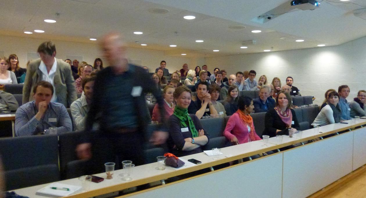 Svein Olaf Dahl innleier den første delen av programmet med nytt frå instituttet. Han fokuserer på dei nye forskarane og presenterer kort alle 19 pågåande Phd-prosjekt ved instituttet.