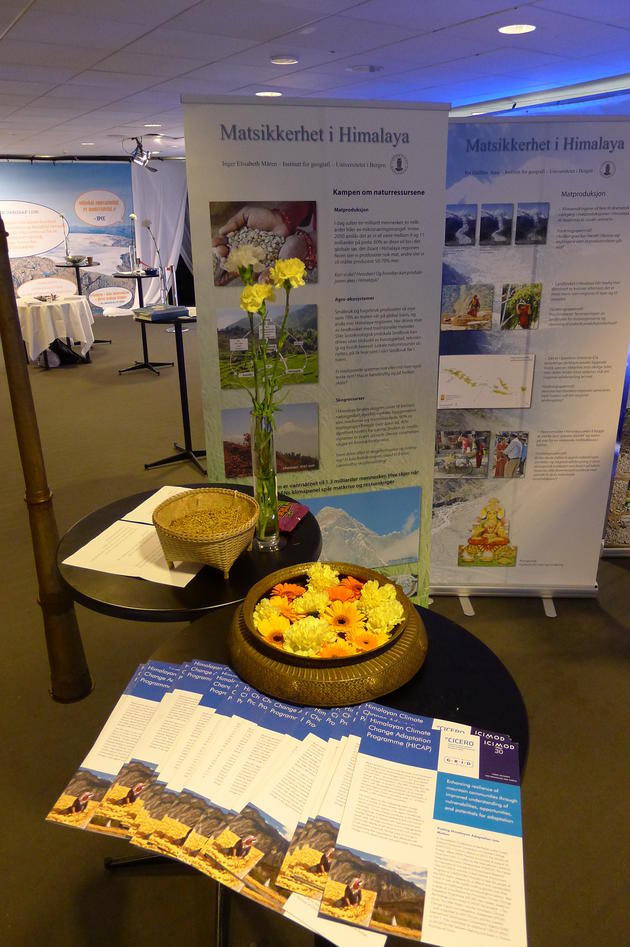 Det er mange av staben på Institutt for geografi som jobber med forskningsprosjekt i Nepal. Da Inger Elisabeth Måren ble spurt om å bidra som utstiller på årets Christiekonferanse, involverte hun forskergruppen for utviklingsgeografi. Hun fikk med seg Tor Halfdan Aase og Peter Andersen, og sammen lagde de utstillingen med hovedtema "Matsikkerhet i Himalaya", med god hjelp av Kjell Helge Sjøstrøm som utformet det grafiske materialet. Med seg på standen hadde de også stipendiatene Dilli Prasad Poudel og Lila Sharma.