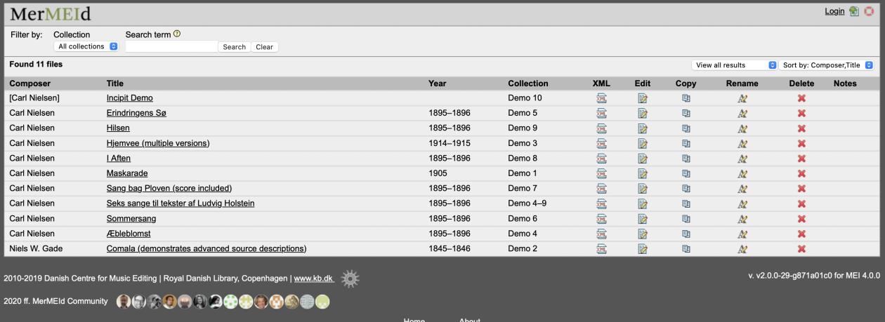 1. å videreutvikle og implementere infrastruktur for editering av flerpråklige og kommenterte digitale verkkataloger utarbeidet ved Senter for Griegforskning (digitale verkkataloger av Grieg, Ørbeck) og prosjektet Norsk musikkarv (Valen, Tveitt), basert på systemet merMEId (Metadata Editor and Repository for MEI Data).