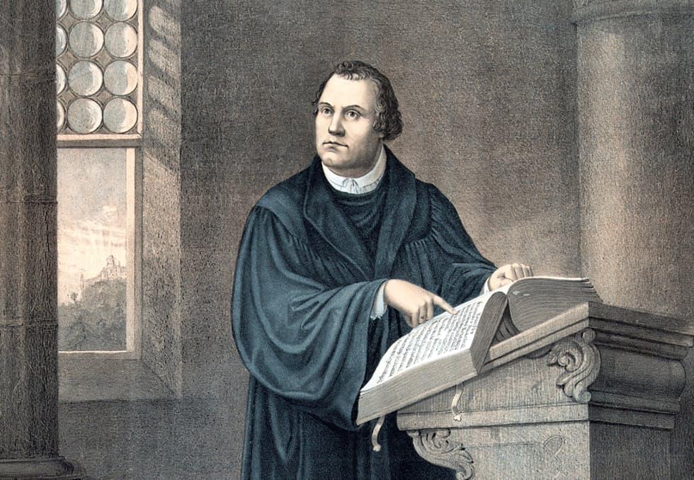 – Martin Luther var katolsk teolog på 1500-tallet, en av kirkens menn, som ønsket å endre på deler av den katolske kirkens praksis og lære. Det Luther reagerte på var avlatshandelen i Tyskland der kirken solgte frelse. De presset penger fra fattige folk som ønsket å få syndsforlatelse for å komme fort ut av skjærsilden og til himmelen, og de tjente seg rike.