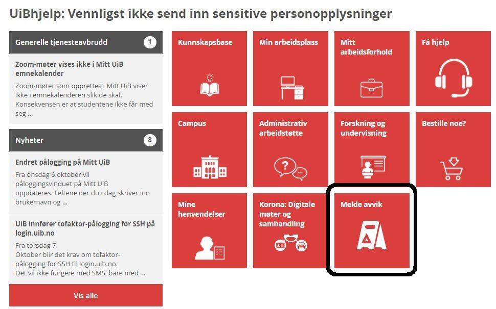 Slik melder du HMS-avvik i UiBhjelp