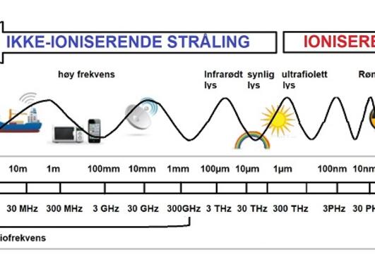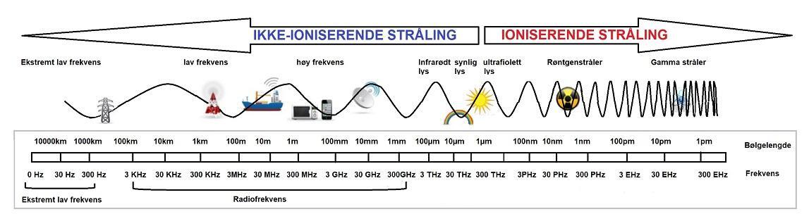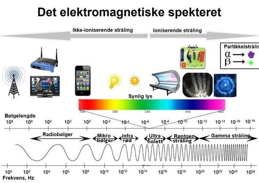 Både radiobølger, lys og stråling er ulike typer stråling i det elektromagnetiske spekteret.