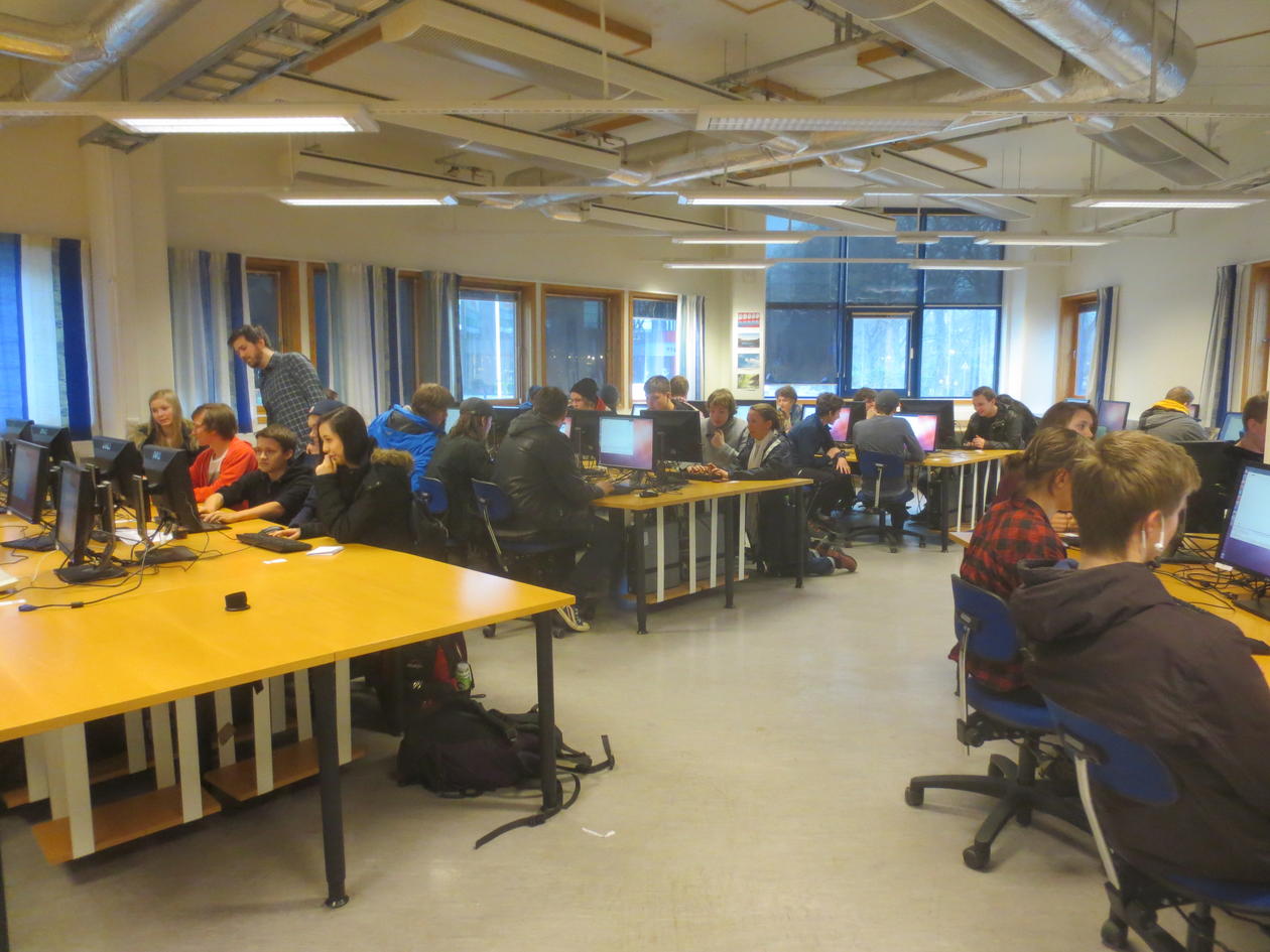Det var stor entusiasme blant deltagerne da elever fra Fyllingsdalen vgs, Bergen Katedralskole, Knarvik vgs og Voss Folkehøgskule deltok på fagdagen ved informatikk. Stipendiatene Pål Drange, Markus Dregi og Sigve Sæther hadde laget et spennende opplegg der Markus programmerte et spill på direkten og det ble arrangert turnering på spillet på slutten.