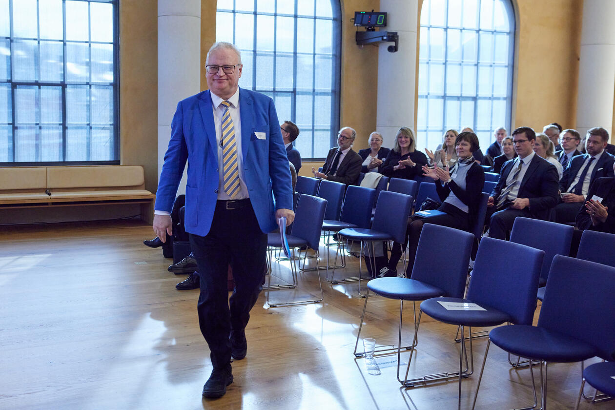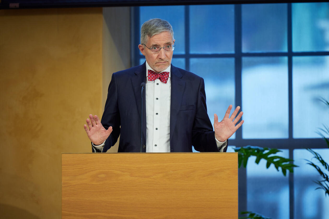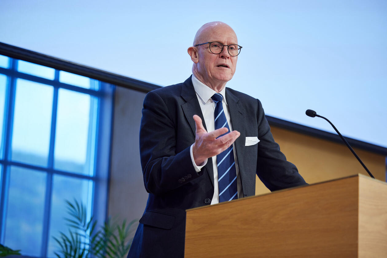 Dekan Karl Harald Søvig ved Det juridiske fakultet, UiB, ønsker velkommen til åpning.