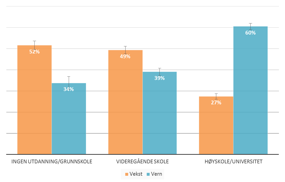 Fordelt på utdanningsnivå: Miljøinteresser eller vekst gjennom industriutbygging?