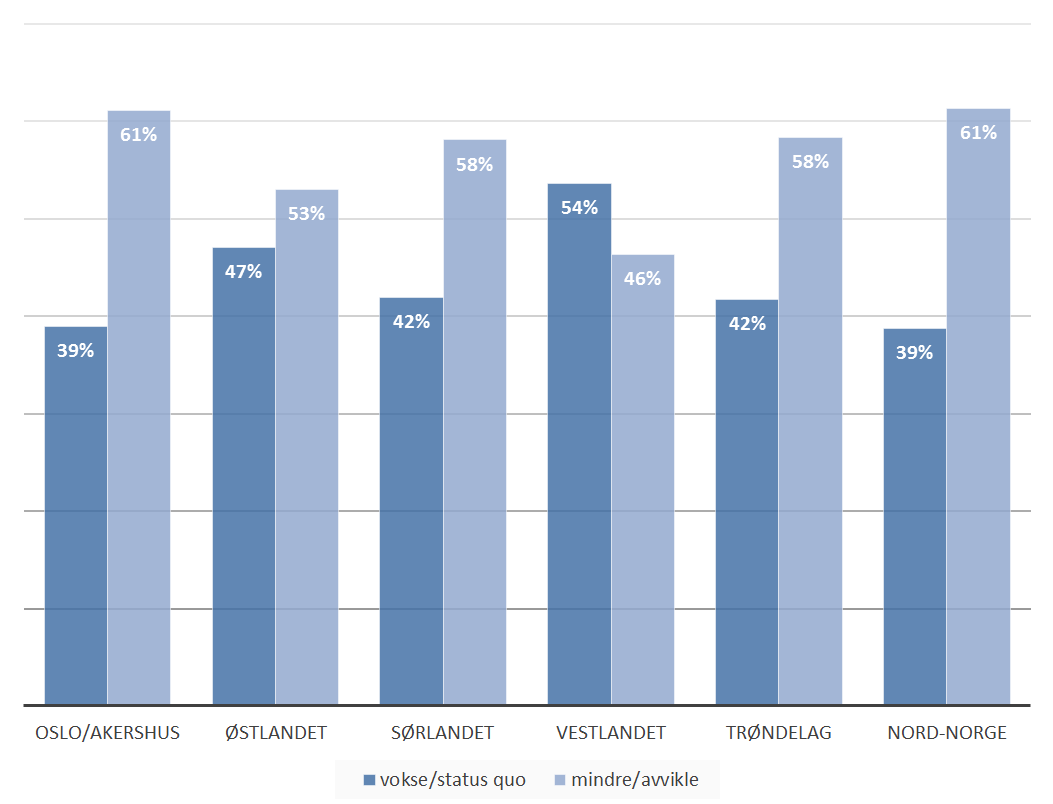 Vestlendingene mest positiv til vekst eller status quo