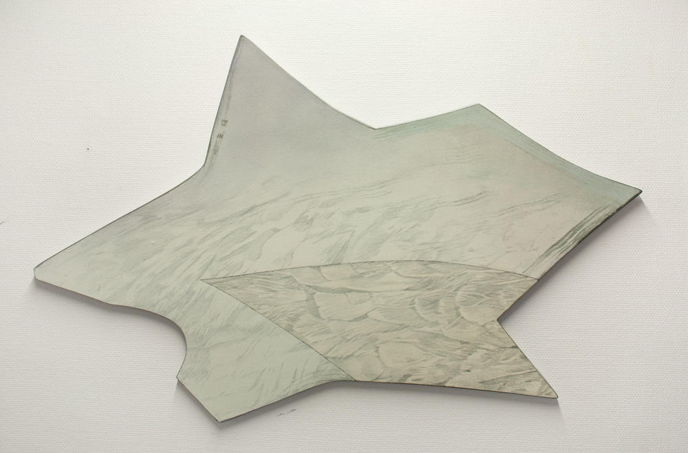 I en korridor på Griegakademiet henger en rekke former. De følger to ”hovedmaler”; de er vinger eller stjerner. Stjernene er formet slik et lite barn gjerne tegner dem, med røft trekantede spisser, men skjevt fordelte, uten den symmetrien eldre barn lærer er riktig. Det barnlige preget gir verket dets poesi.