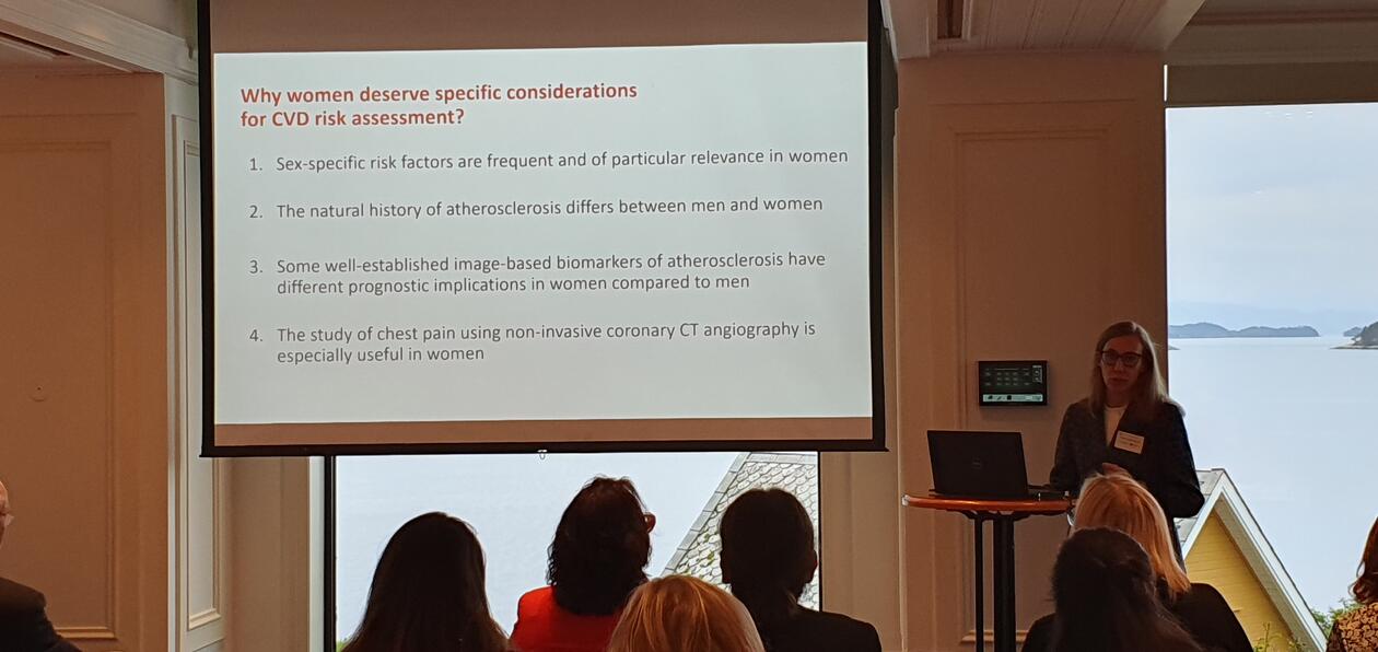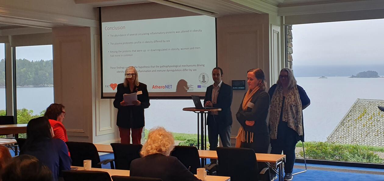 Møtet inneholdt også en sesjon med fokus på bruk av multiomics for bedre forståelse av underliggende mekanismer ved kjønnsforskjeller i hjertesykdom. Sesjonen var et samarbeid med den EU finansierte COST action AtheroNet. Professor George Kararigas presenterte kjønnsforskjeller ved translasjonelle studier av hjerteremodellering, professor Kirsten Holven la fram ny kunnskap om hvordan høyt kolesterol bidrar til hjertesykdom hos kvinner, og postdoktor Hilde Halland presenterte egne data om hvordan proteomics avslører ulike patofysiologiske mekanismer for fedme-assosiert inflammasjon.