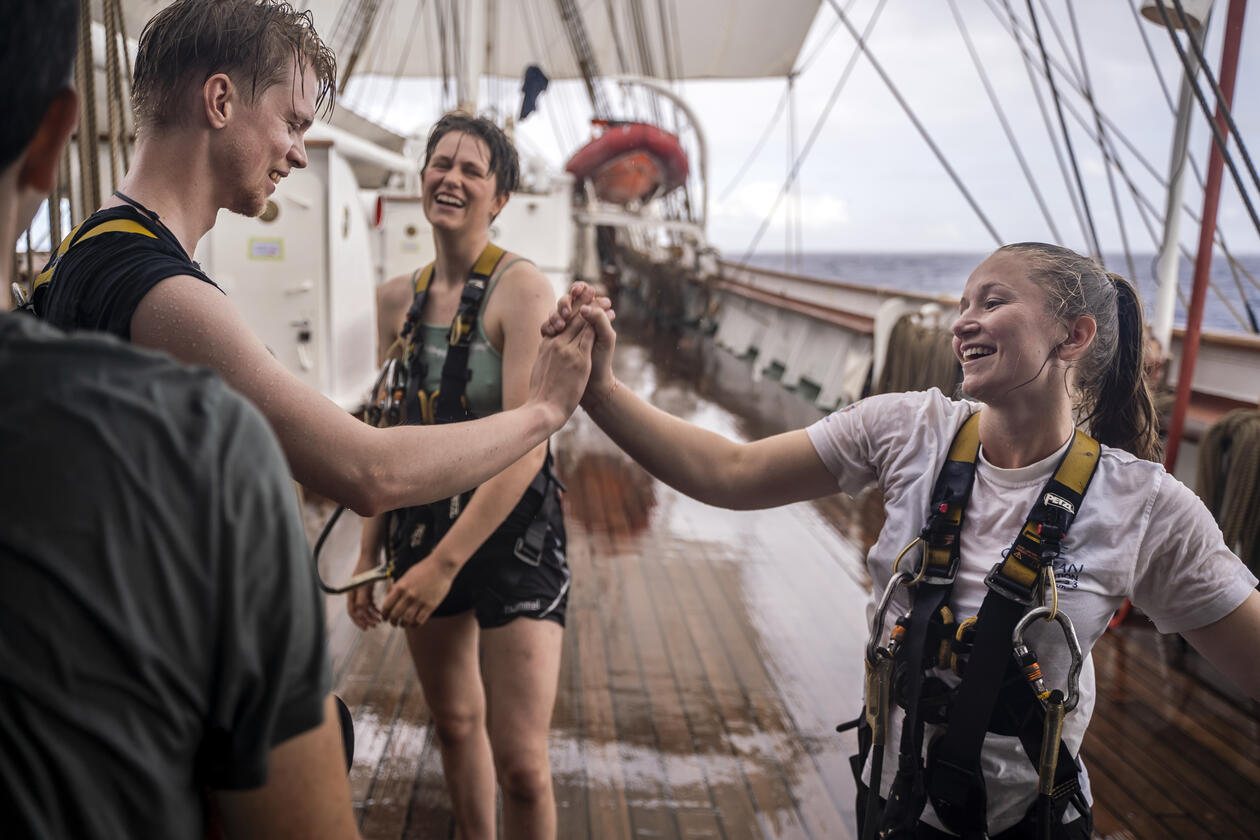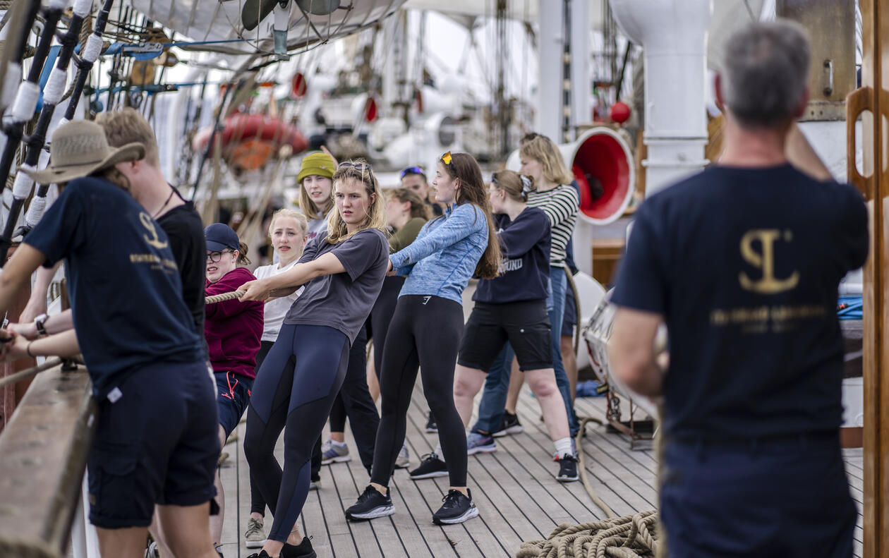 86 studenter fra 12 land tok hyre på seilskipet Statsraad Lehmkuhl, fra Valparaiso til Palau, under sommerkurset fra mai til august i 2022.