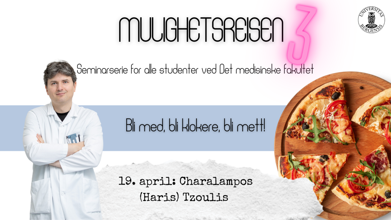 Velkommen til andre seminar av "Mulighetsreisen". En åpen seminarserie for studenter ved Det medisinske fakultet som er nysgjerrige på en akademisk karriere. Her skal vi bli bedre kjent med studenter som har hatt tatt steget inn i forskningen.