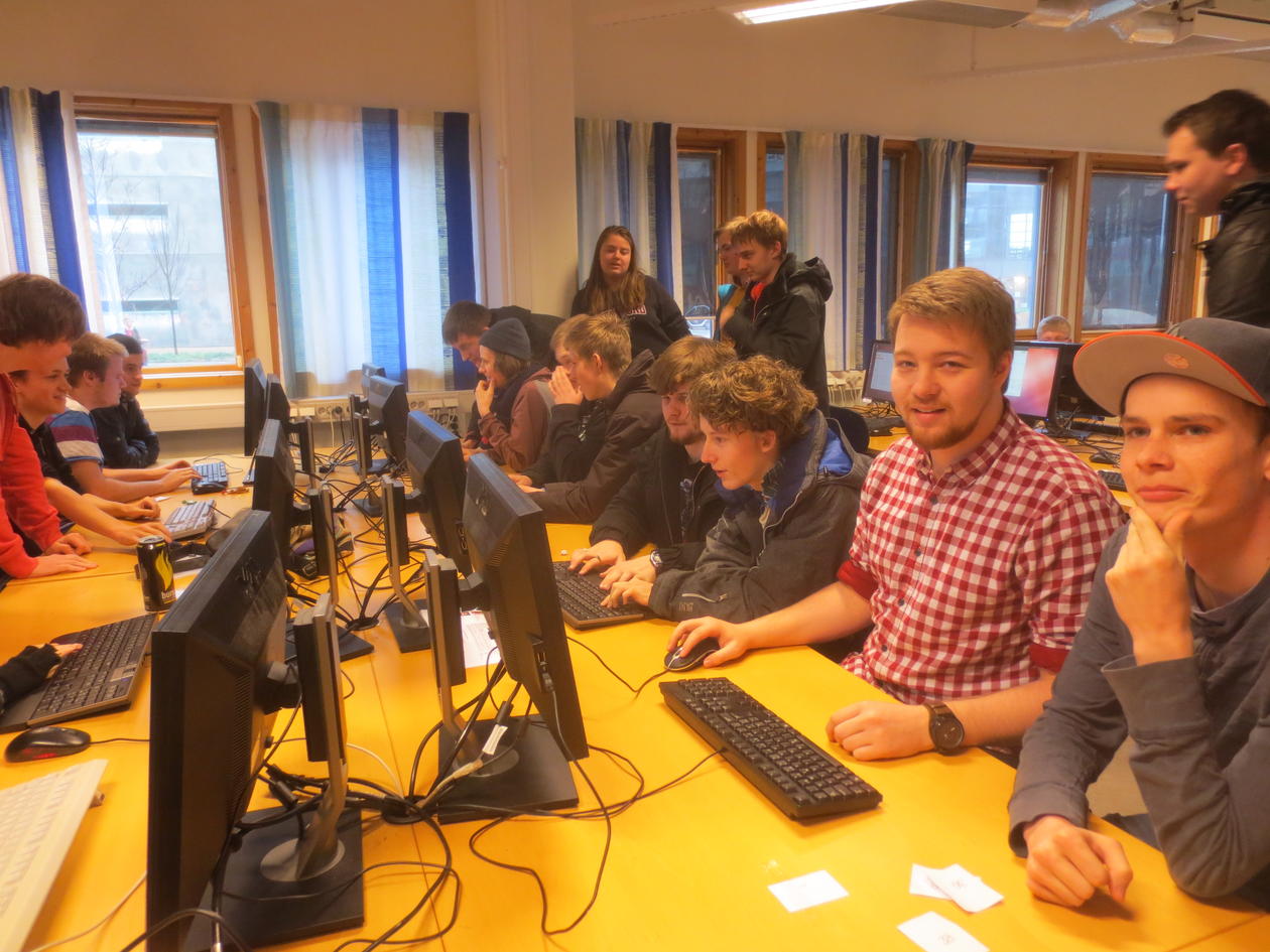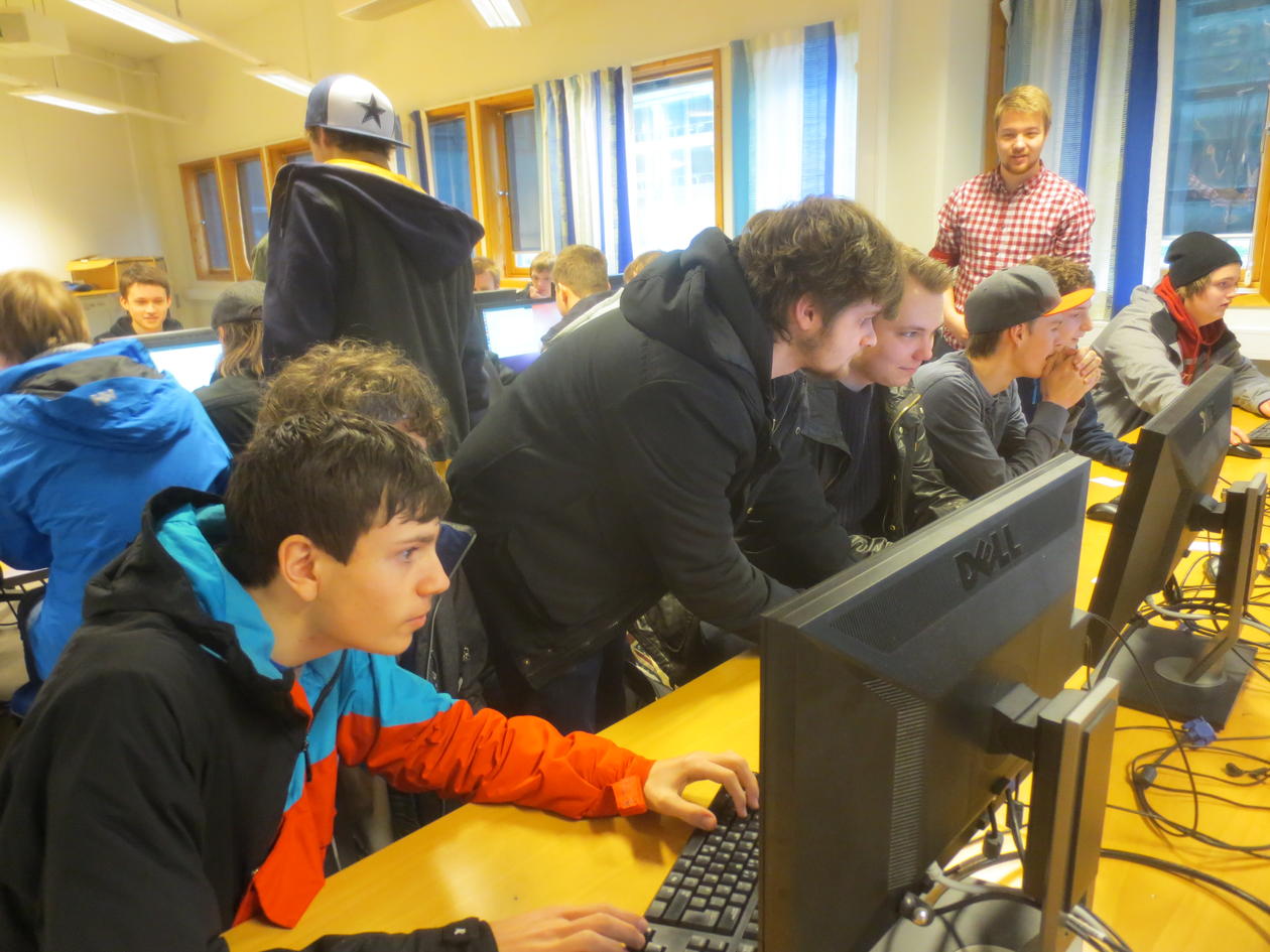 Det var stor entusiasme blant deltagerne da elever fra Fyllingsdalen vgs, Bergen Katedralskole, Knarvik vgs og Voss Folkehøgskule deltok på fagdagen ved informatikk. Stipendiatene Pål Drange, Markus Dregi og Sigve Sæther hadde laget et spennende opplegg der Markus programmerte et spill på direkten og det ble arrangert turnering på spillet på slutten.