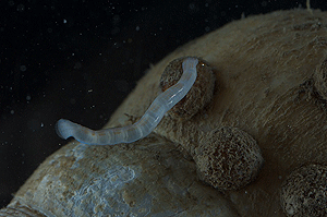 David Shale is a freelance nature photographer from Southampton in England. He is hired to document the cruise through pictures and movies of the discoveries made onboard. This picture of the leech Daria and Christiane discovered is taken by David.