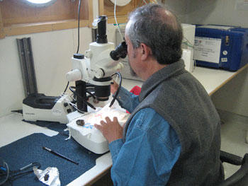 As has been evident to us just by watching the scientists on the cruise, the interconnectiveness between the geologists, the macro biologists, and the microbiologists is crucial to the success of our mutual search for knowledge. For example, as Fernando explained, the chemistry of the sediment needs to be compared with the discoveries of the microbiologist. Discovering which microorganisms are dormant at certain levels of the sediment, and which are active, works hand in hand with the work on determining the chemistry of the sediment. How does the chemistry affect each state? What nutrients are available at each level of sediment.