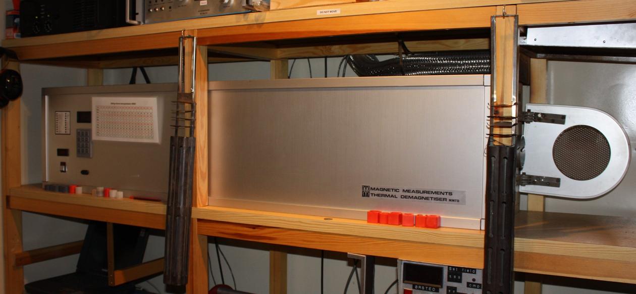 Commercial and in-house alternating field (static and tumbler) and thermal demagnetizers located in the low-field room.
