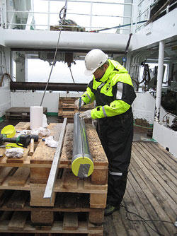 At the same time, Stig Monsen set out a last gravity corer that brought up a sample that contained layers with more evidence of volcanic activity.