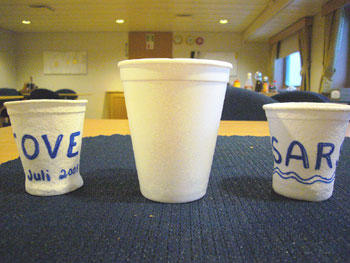 The last task of the day was to take a reference CTD. We sent a couple of Styrofoam cups down with the CTD to measure the effects of pressure in deep water (414m). You can see the results for yourself!