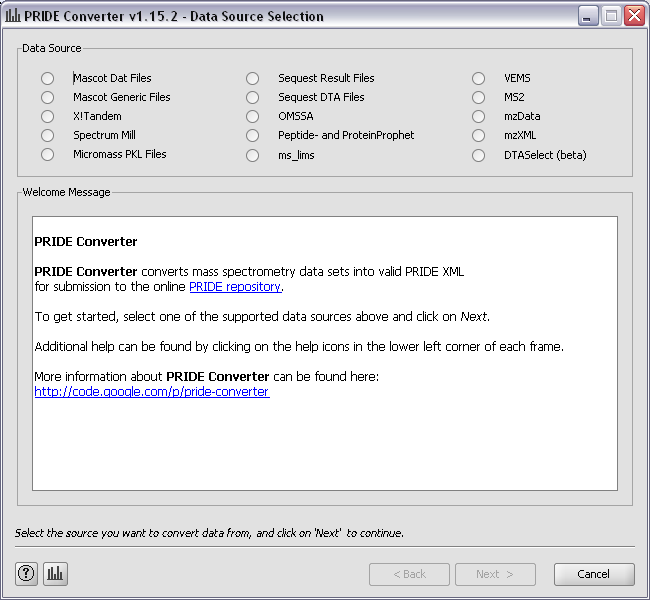 PRIDE Converter converts mass spectrometry data from most common data formats into valid PRIDE XML for submission to the publicly available PRIDE database. It presents a convenient, wizard-like graphical user interface, and includes efficient access to the Ontology Lookup Service (OLS).