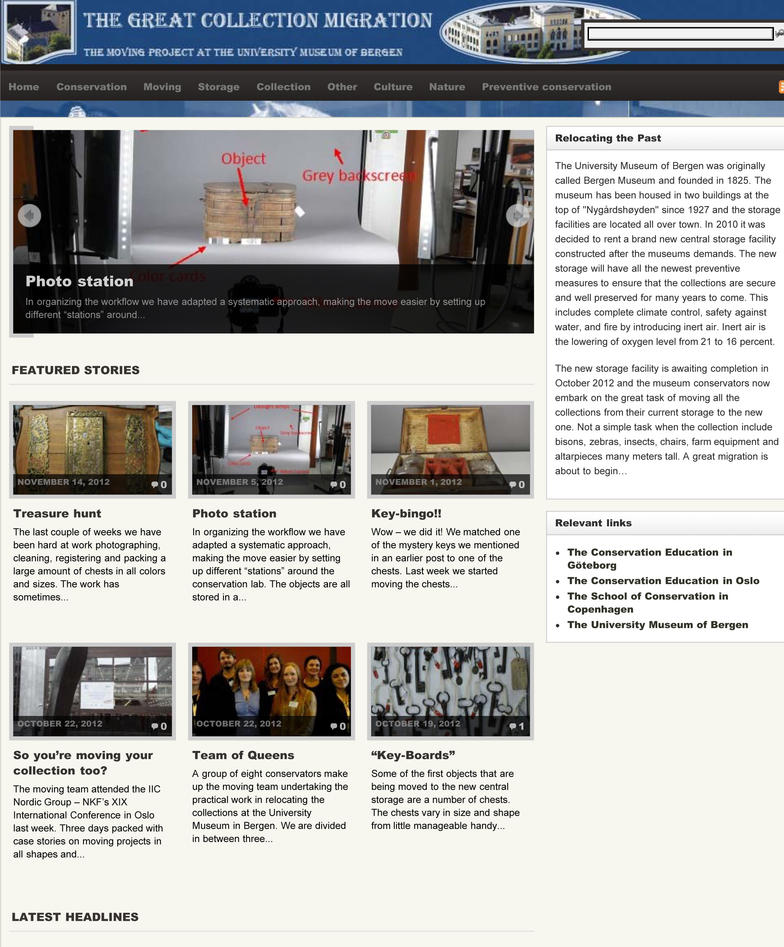 Responsible for the project is a group consisting of mainly conservators, from Norway, Sweden, Denmark, Germany, and Brazil. You can read more about the team and about the moving process on the comprehensive and exquisite blog. The blog is in English, both because of the team members’ diverse backgrounds and because the project attracts international interest. To enter the Museum’s moving blog, click here: The Great Collection Migration.