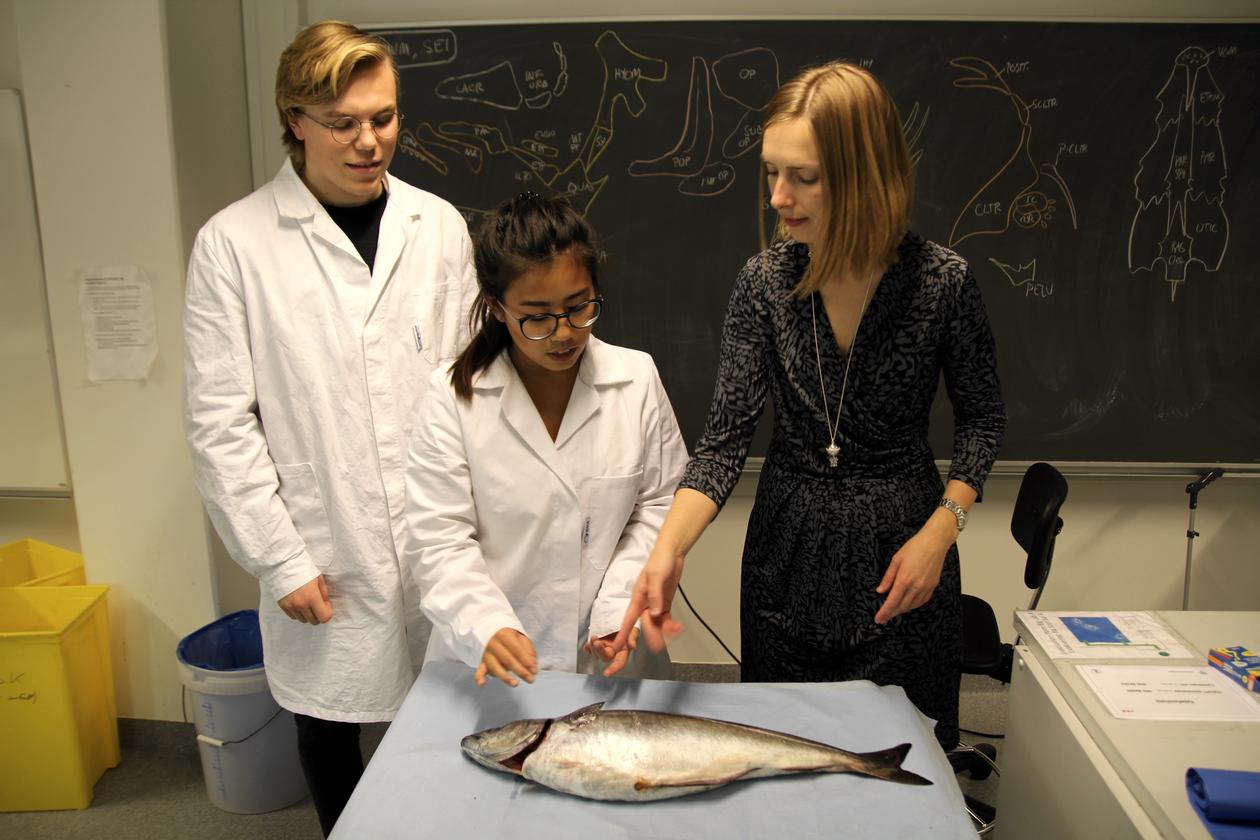 Nybø vitja bioCEED-studentar i eit av miljøa dei trivst best i: på laboratoriet på Marineholmen. Ministeren fekk både sett inni og utanpå fiskane, og ikkje minst høyrt frå studentane sjølve korleis det er å studera ved Senteret for framifrå utdanning.