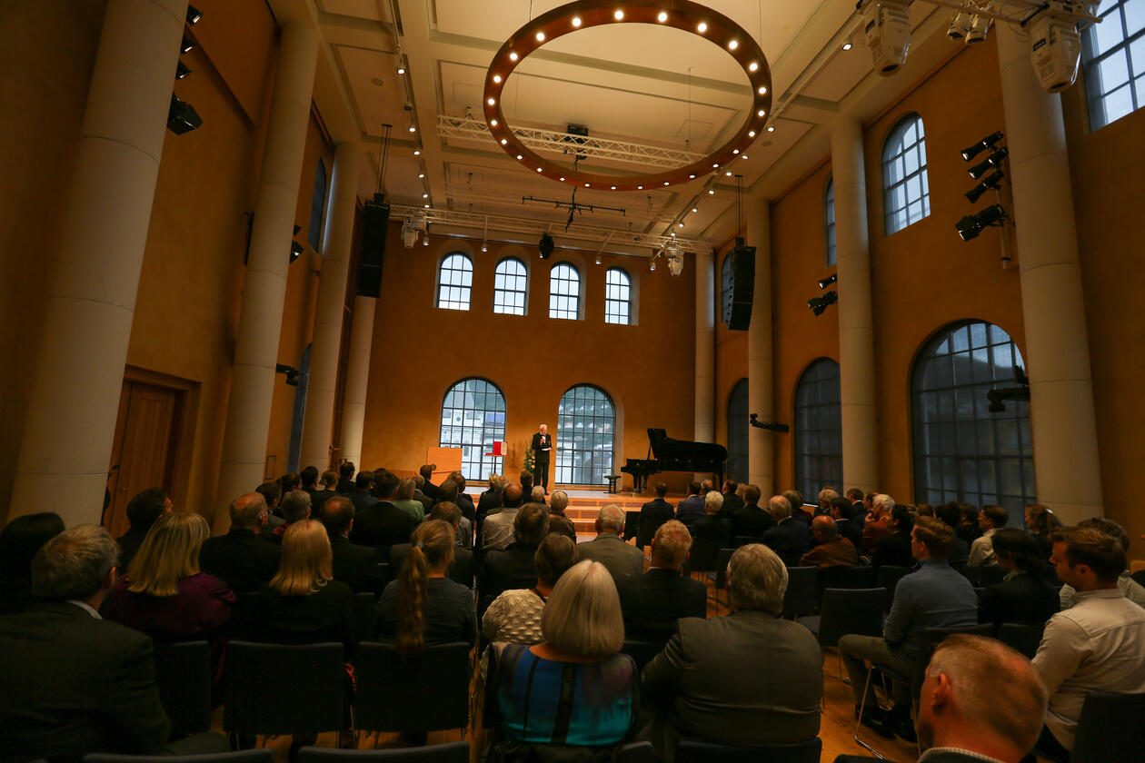 Det var mange som møtte fram for å ære professor emeritus Jan Mangerud i Universitetsaulaen tirsdag. Assisterende statsforvalter Gunnar O. Hæreid, rektor Margareth Hagen, instituttleder professor Atle Rotevatn ved Institutt for geovitenskap og en av hans tidligere studenter uttalte seg rosende om Mangeruds betydning for geovitenskapen.