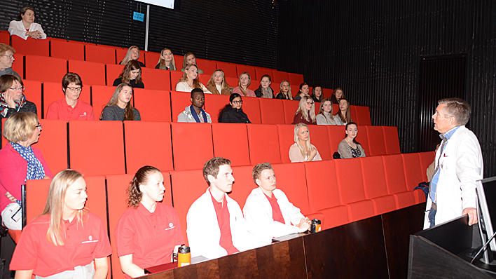 30 elever fra videregående skole fikk en grundig innføring i tannlegestudiet og tannpleierstudiet. De var interesserte og stilte en del spørsmaål, bl.a. om hva som kreves for å komme inn på studiene.