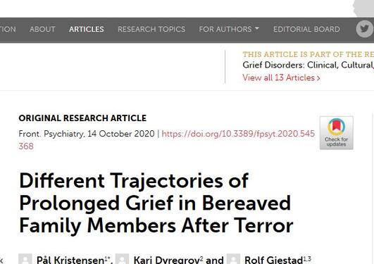 Pål Kristensen, Kari Dyregrov og Rolf Gjestad har publisert en artikkel i Frontiers in Psychiatry.