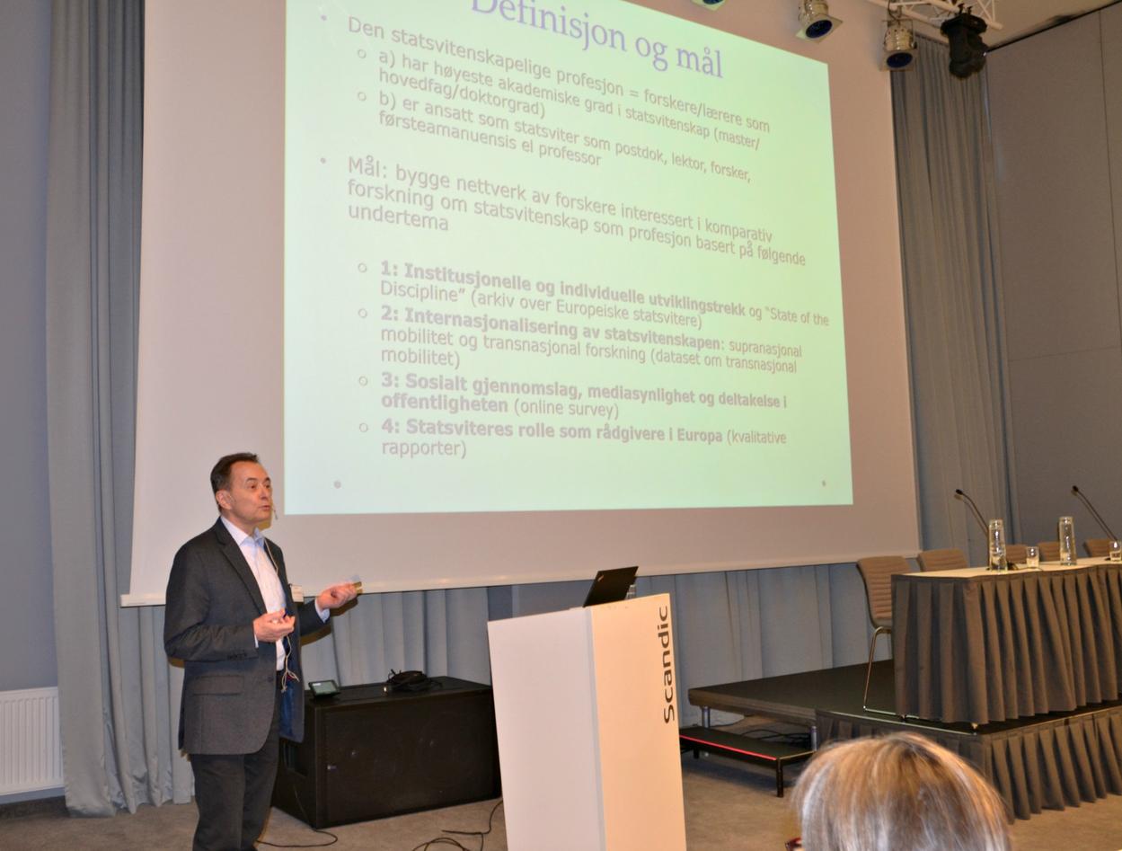 På dag to av konferansen, engasjerte to presentasjoner statsviterforsamlingen. Professor Ivar Bleiklie ved Institutt for administrasjon- og organisasjonsvitenskap holdt foredraget; Norske statsvitere i forskning og høyere utdanning: Hvem er de, hvor er de, hva gjør de? Foredraget diskuterte hvordan vi kan definere statsvitere som yrkesgruppe, og la fram tall som blant annet viser at det fortsatt er en overvekt av mannlige statsvitere og at miljøet i stor grad er sentrert rundt Oslo og Bergen. Førsteamanuensis Leiv Marsteintredet og stipendiat Troy Broderstad ved Institutt for sammenliknende politikk presenterte sin forskning på norske statsvitenskapelige publikasjoner på nasjonalt, europeisk og internasjonalt nivå. Disse debattene om den norske konteksten engasjerte publikum stort, noe lederne på begge institutt merket seg;