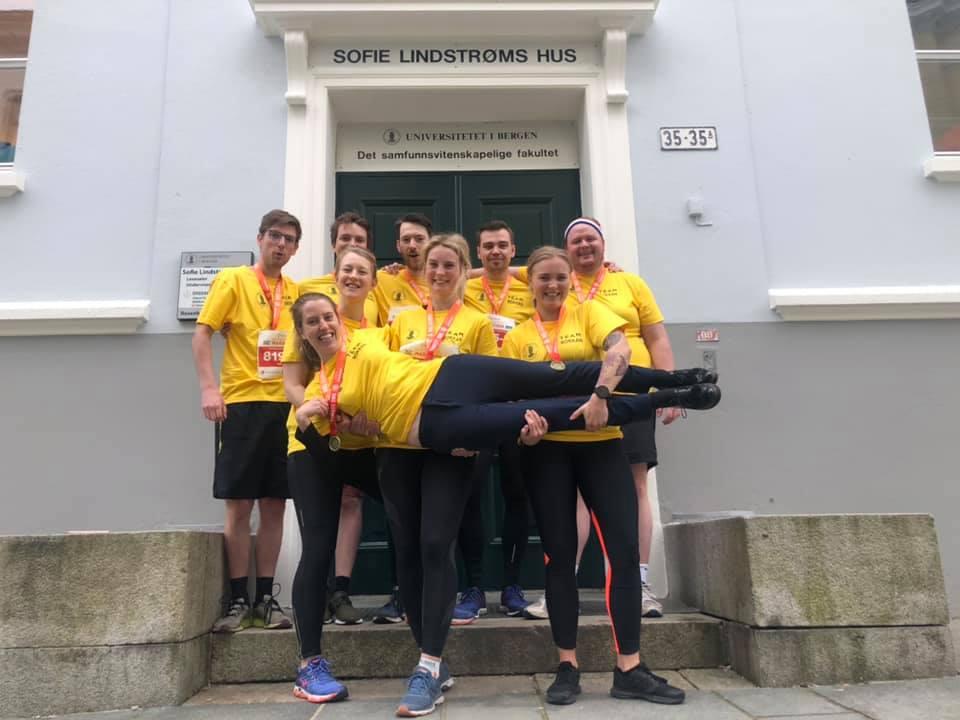 Som et avbrekk i det som kan sies å være en hektisk periode med tanke på både eksamen og levering av masteroppgave, hadde masterstudentene ved sammenliknende politikk meldt seg på stafetten på Bergen City Marathon lørdag 27. april. Initiativtaker og andre års masterstudent, Nadia Rojahn Martinsen, hadde samlet sammen løpsentusiaster både fra første- og andre året på masterprogrammet.