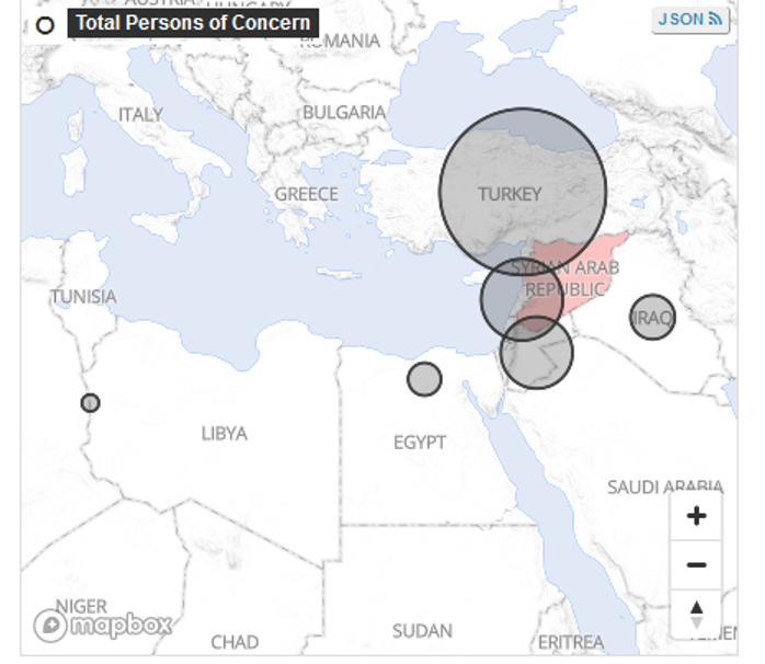Totalt har 5,6 millioner flyktet ut av landet siden krigens utbrudd, og det er naboland som Tyrkia, Jordan, og Libanon som huser majoriteten av syriske flyktninger i dag.