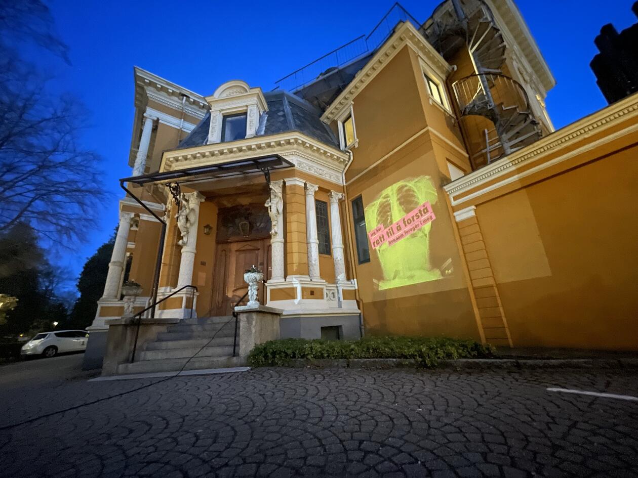 Bak dette stuntet stod Rebecca Marcussen, bachelorstudent i visuell kommunikasjon ved Fakultetet for kunst, musikk og design (KMD) ved Universitetet i Bergen. I samband med bacheloroppgåva si utforskar ho projeksjonar som kommunikasjonsverktøy for aktivistar, med ein teori om at desse kan vere viktige tillegg til aktivistar si verktøykasse: