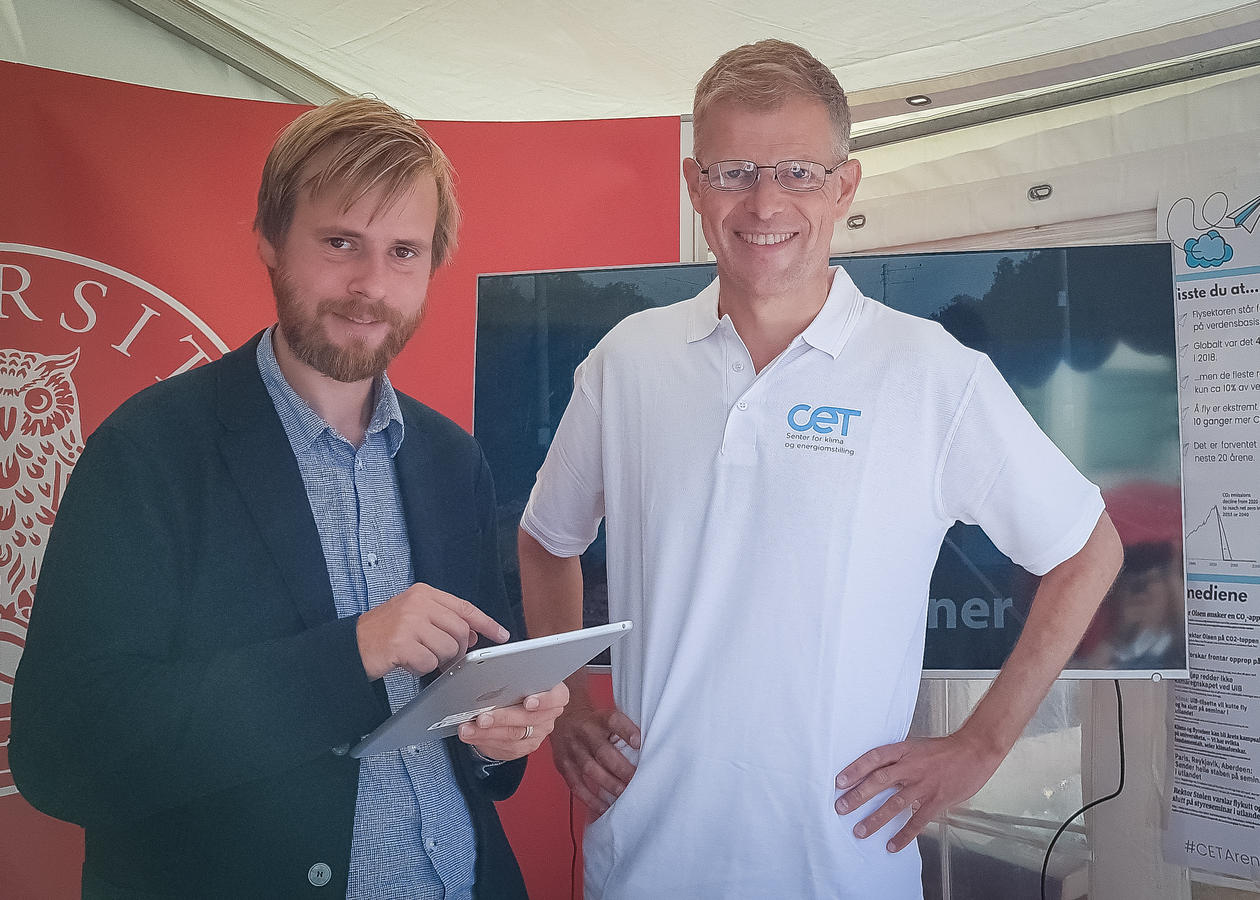 Klima- og energiomstillingssenteret CET lanserte sin karbonplanleggar under Arendalsuka på stand for Universitetet i Bergen.