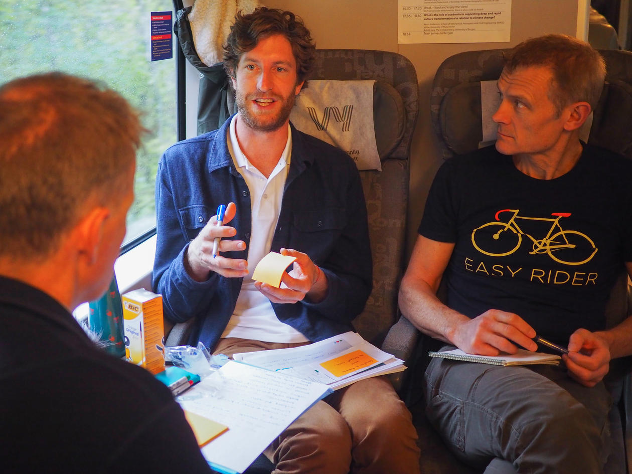 25 forskere fra Storbritannia, Sverige, Frankrike og Finland fikk miljøvennlig transport og kickstart på årets Beyond Oil- konferanse. Senter for klima- og energiomstilling (CET) leigde like godt en hel togvogn og tok opptakten til konferansen på vegen over fjellet fra Oslo til Bergen.