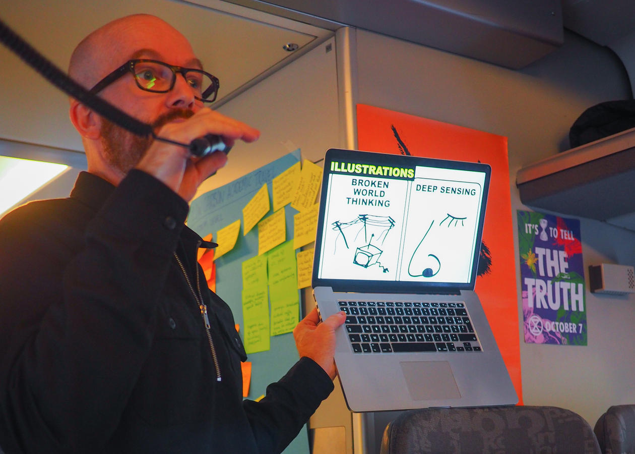 Klimaomstillingssenteret CET tyvstartet like godt Beyond Oil - konferansen ved å okkupere en hel togvogn på toget fra Oslo til Bergen.