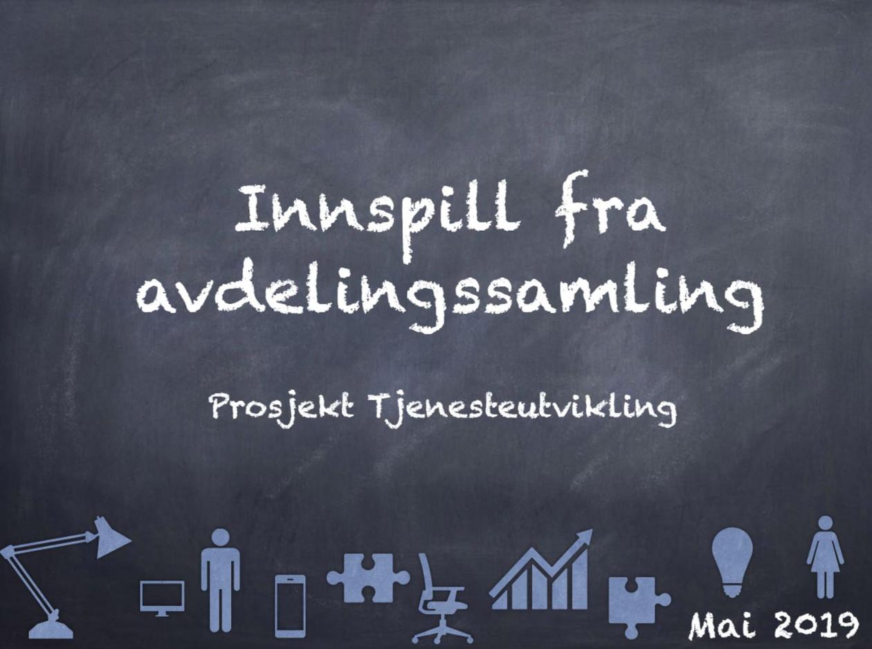 Prosjekt Tjenesteutvikling møtte alle avdelingene i sentraladministrasjonen i uke 18 og 19. Innspillene deres er nå oppsummert og tilgjengelig.