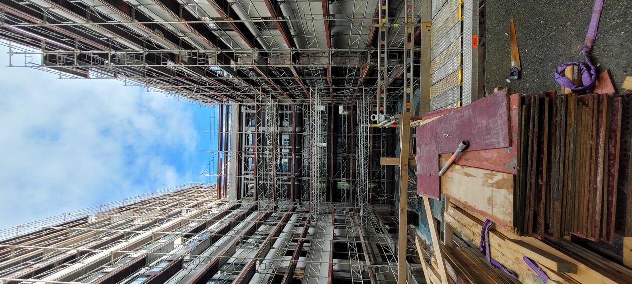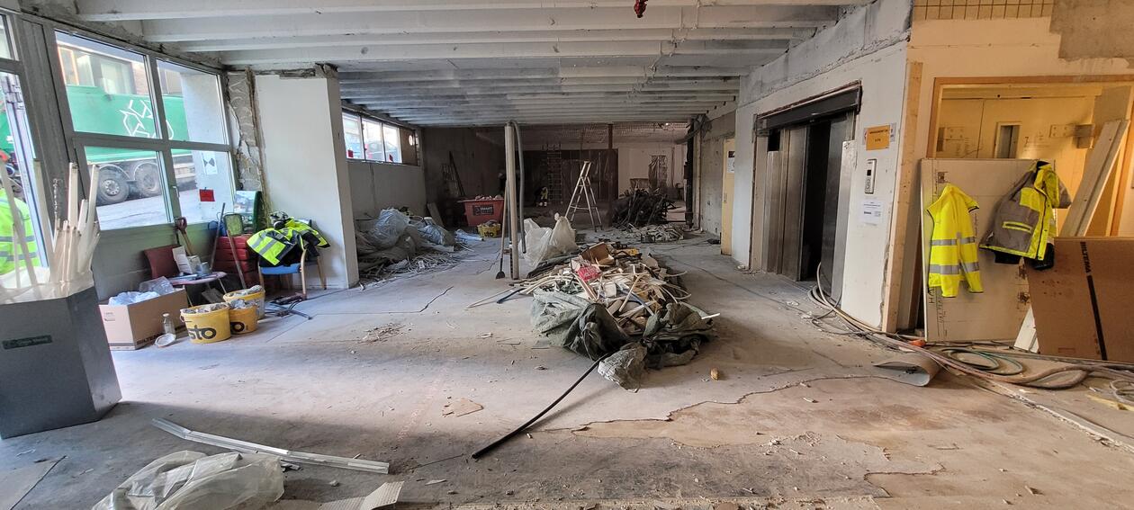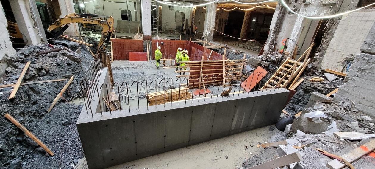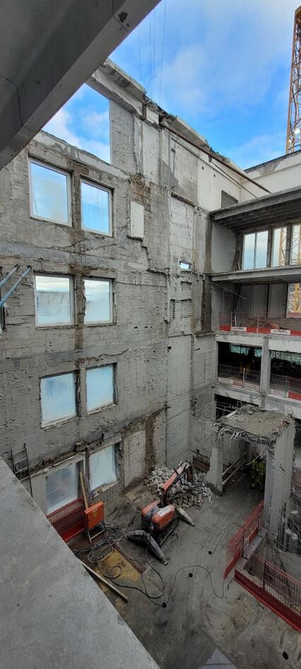 Innvendig i "Øksehugget" er det nå revet ned til 4 etasje:
