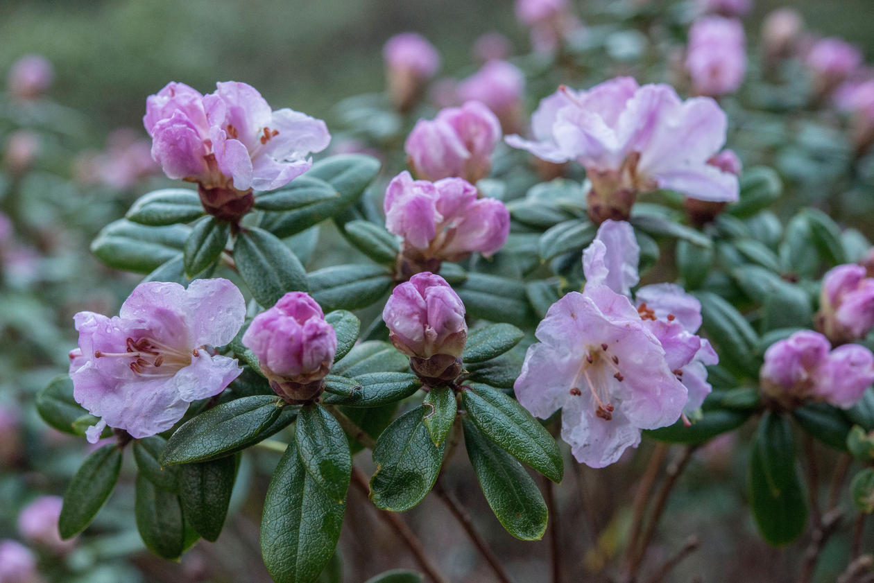 Av tidlige Rhododendron i Arboretet er vanligvis Rh. 'February Dawn' først ute. Som navnet sier blomstrer den gjerne i februar, men i milde vintrer kommer den tidligere, og vi er ikke overrasket over at den står i blomst i januar. I Muséhagen blomstrer en annen Rhododendron, nemlig Rh. mucronulatum, og den er en av foreldreartene til kultivaren Rh. 'February Dawn'. I Arboretet er vi ikke vant med at Rh. mucronulatum kommer i blomst allerede i januar. Muséhagen ligger foran med flere uker.