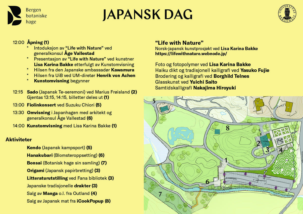 Det er fjerde gang vi arrangerer en Japansk dag i hagen. På denne dagen samarbeider vi med det japanske miljøet i Bergen og Den japanske ambassaden om å presentere japansk kunst, kultur og tradisjon til et bredt publikum.