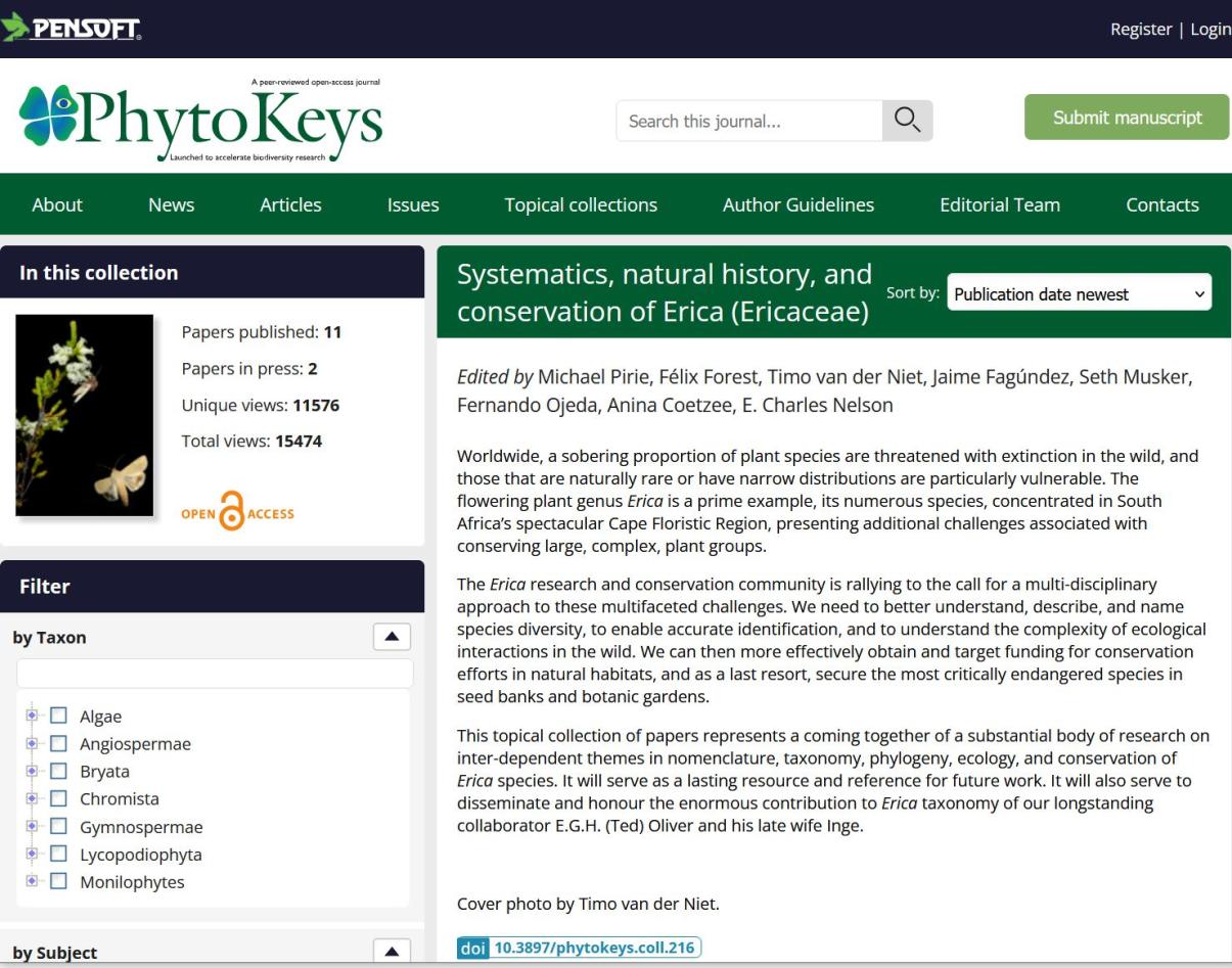 En samling av artikler er publisert i det botaniske tidsskriftet PhytoKeys, for å gi viktige grunndata for å støtte bevaring av truede lyngarter (slekten Erica, en blomstrende plante av familien Ericaceae).